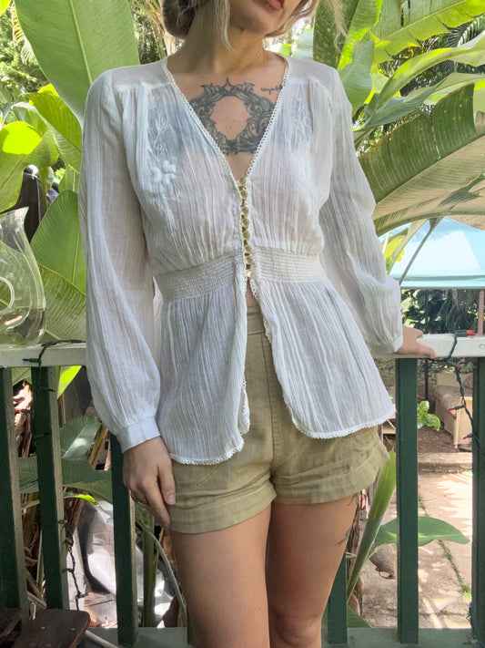 1970s Nylon Bar Scene Novelty Button up blouse Small