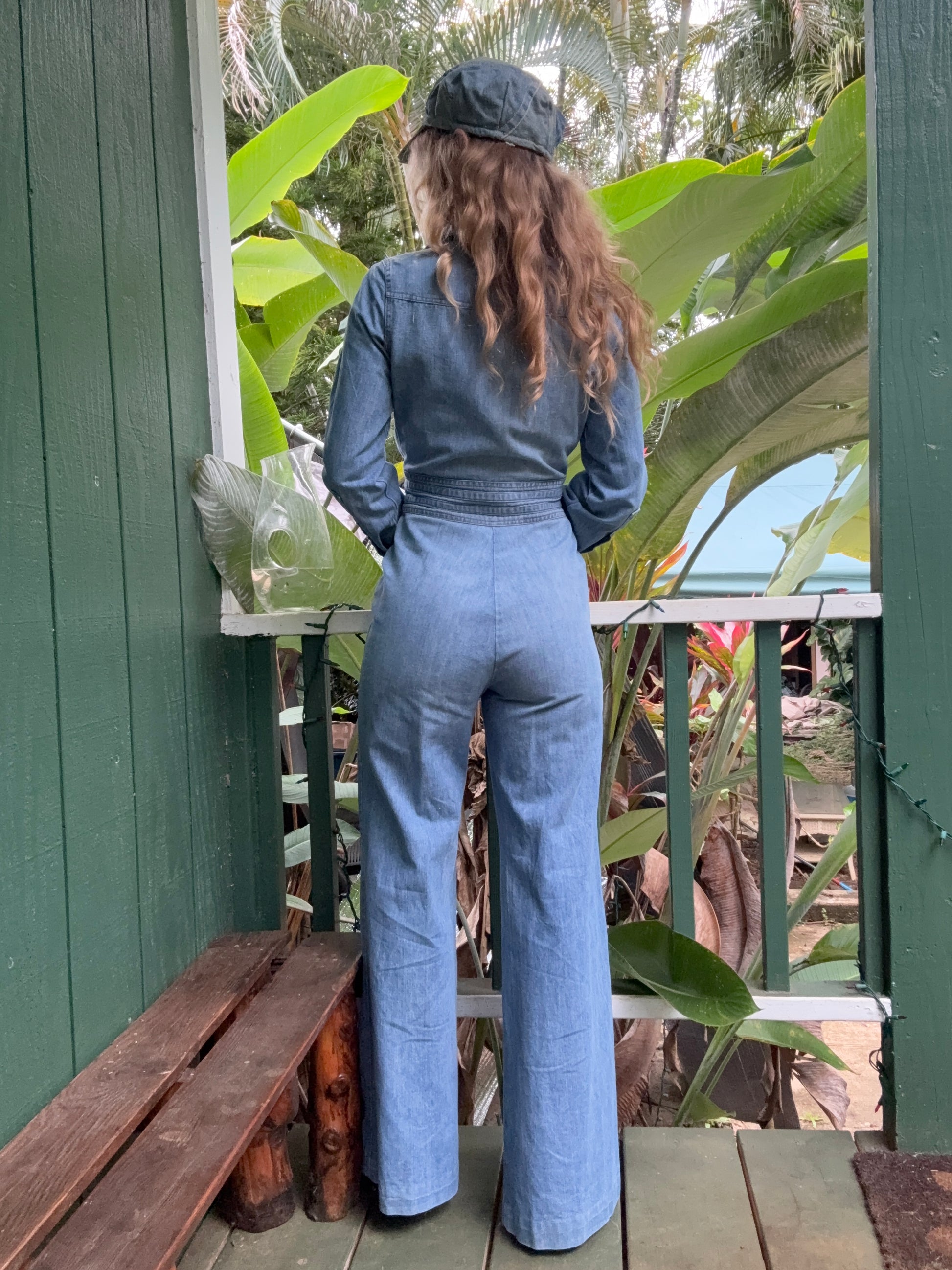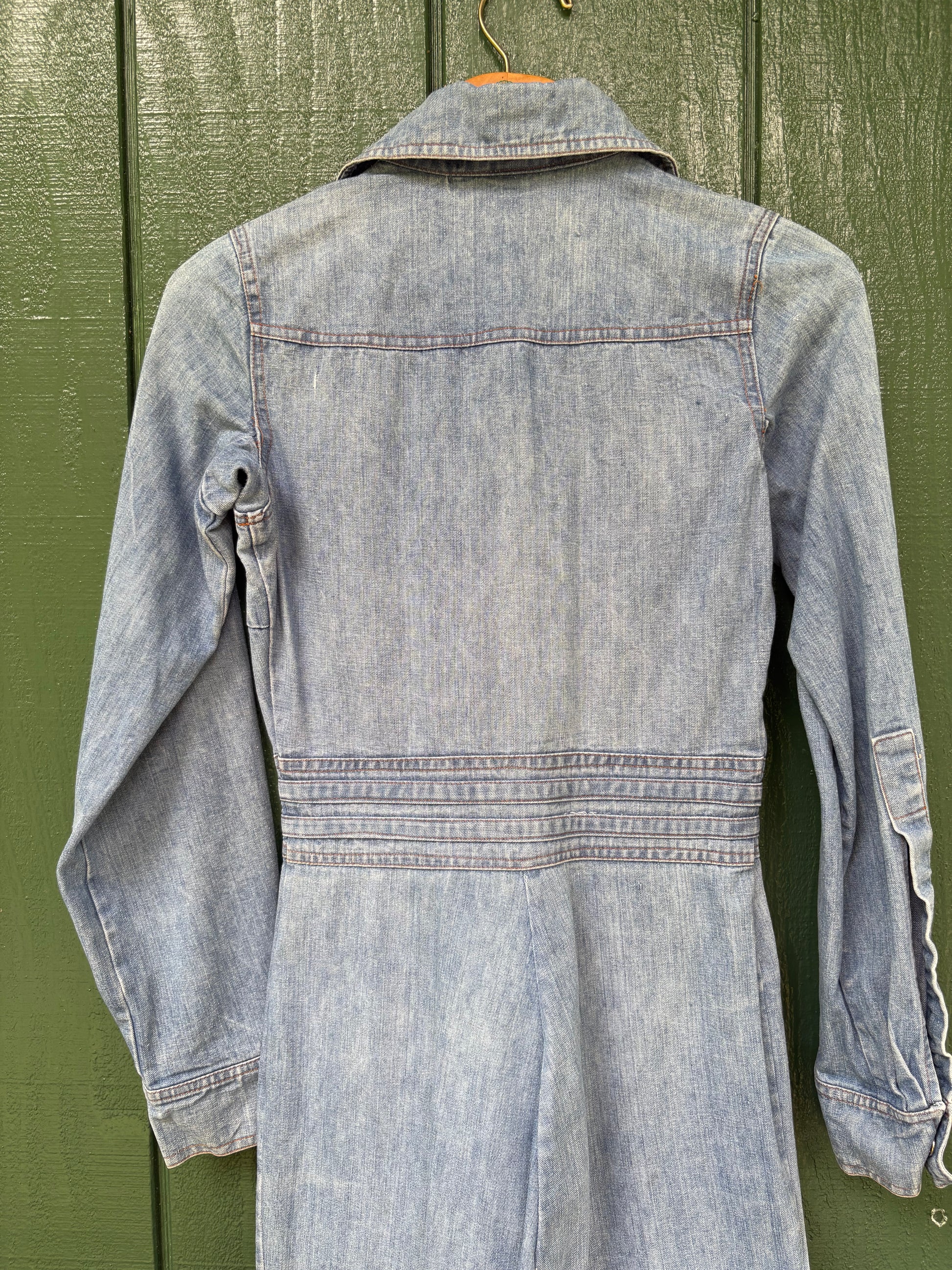 1970s Long Sleeve Bell Bottom Denim Jumpsuit Mr Berrie