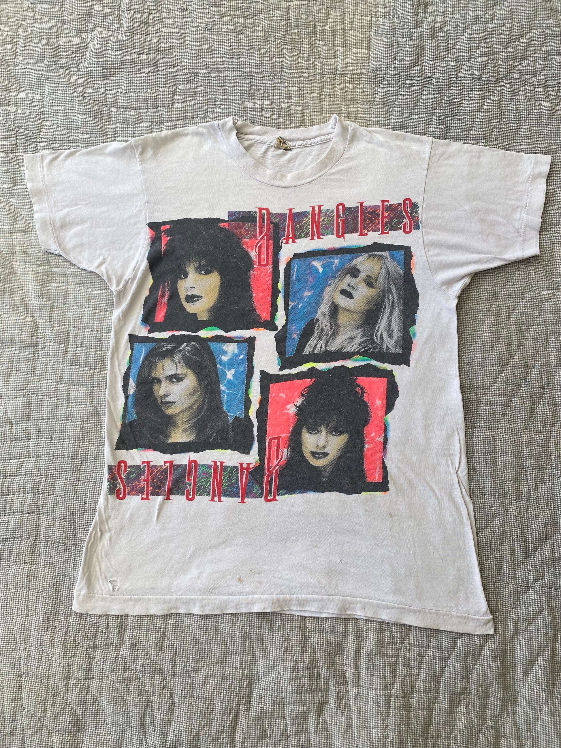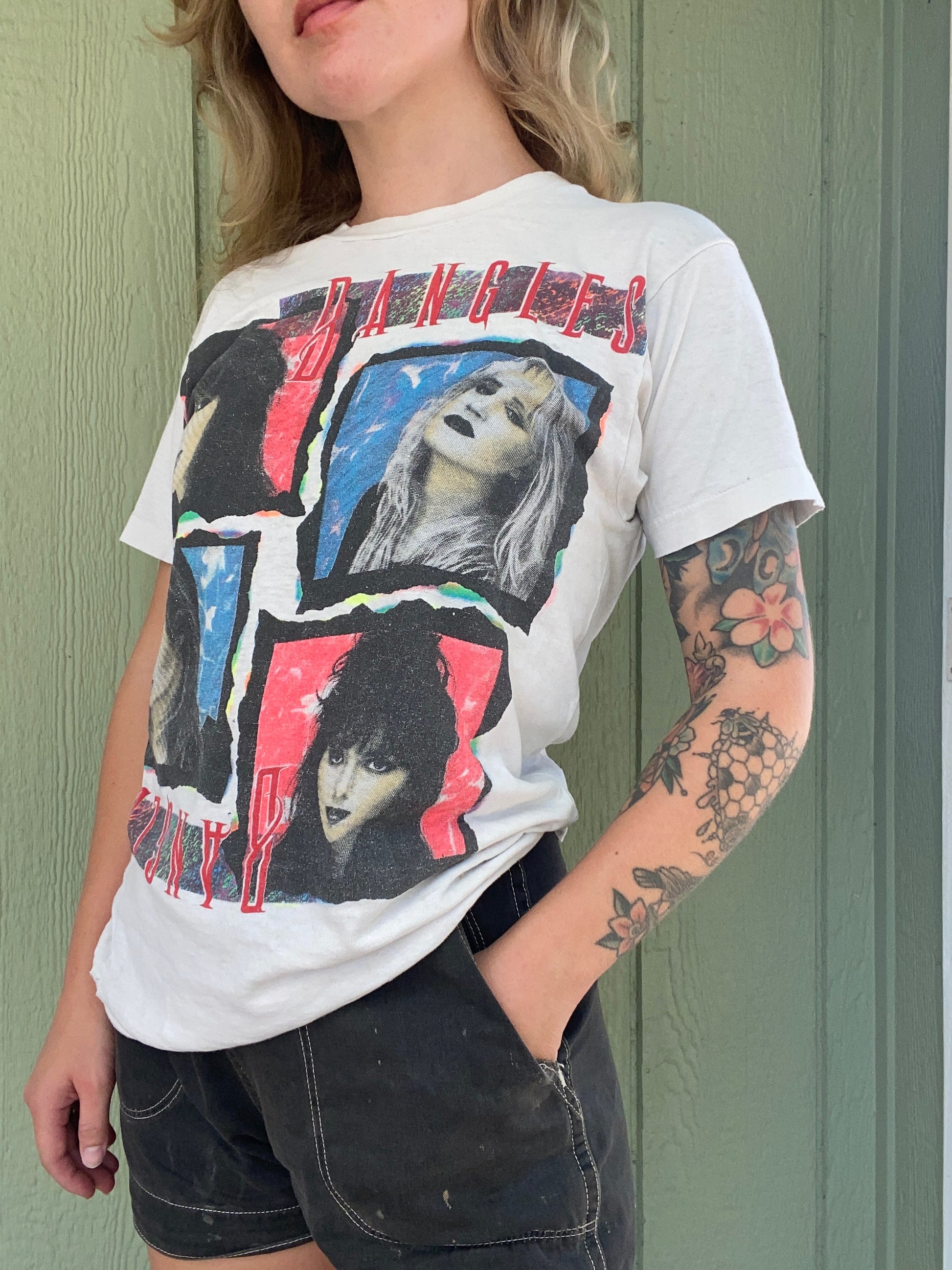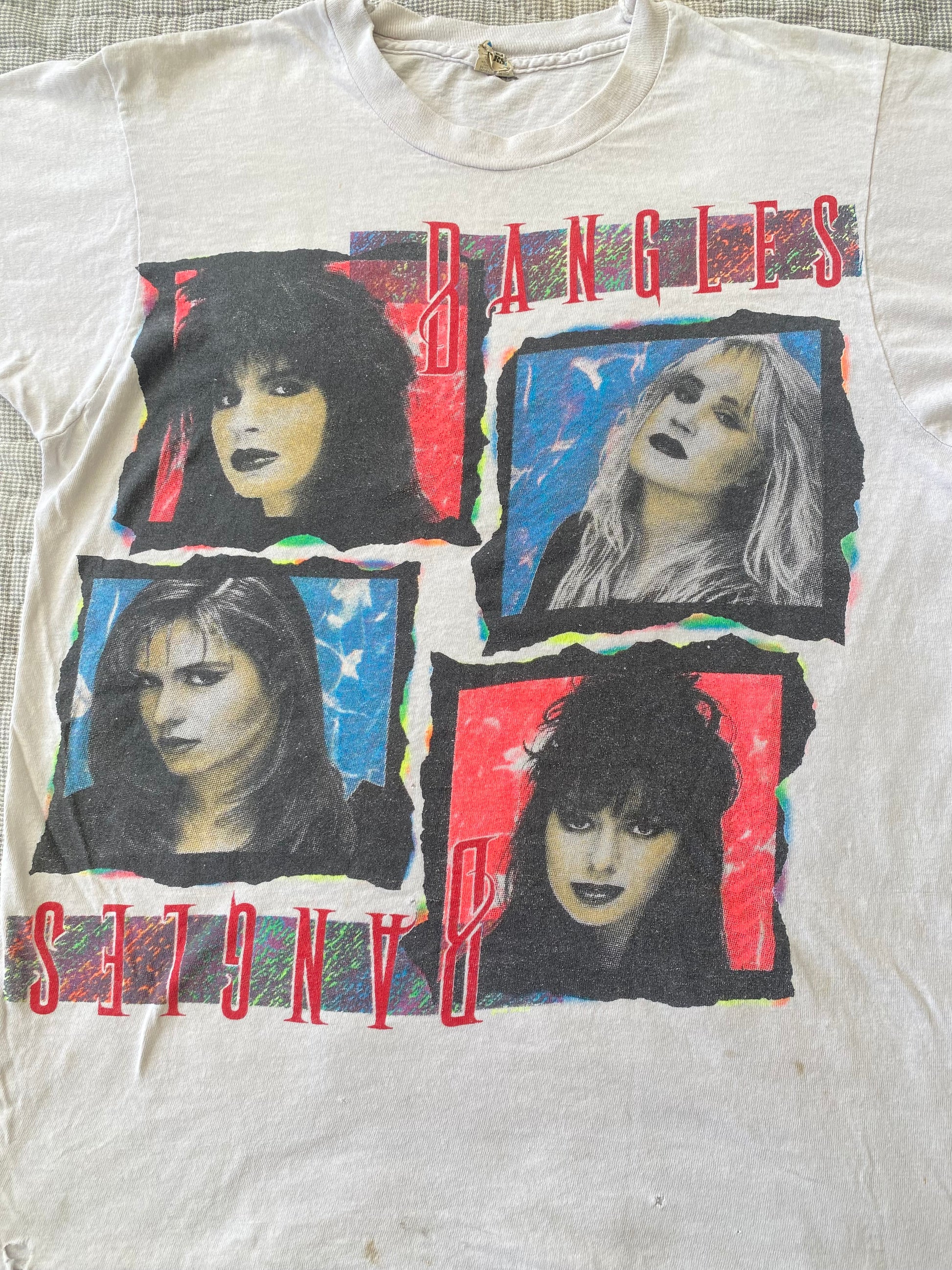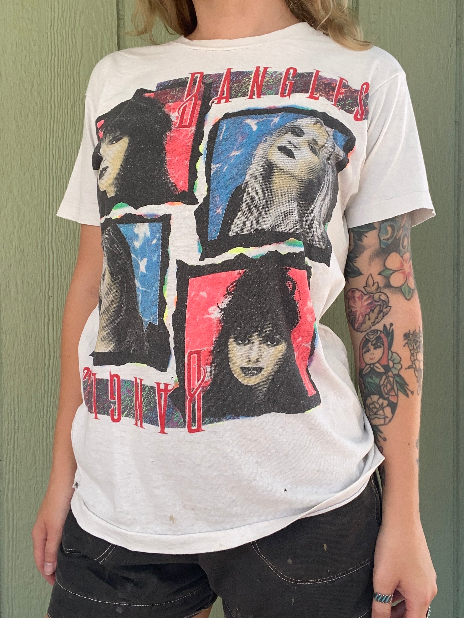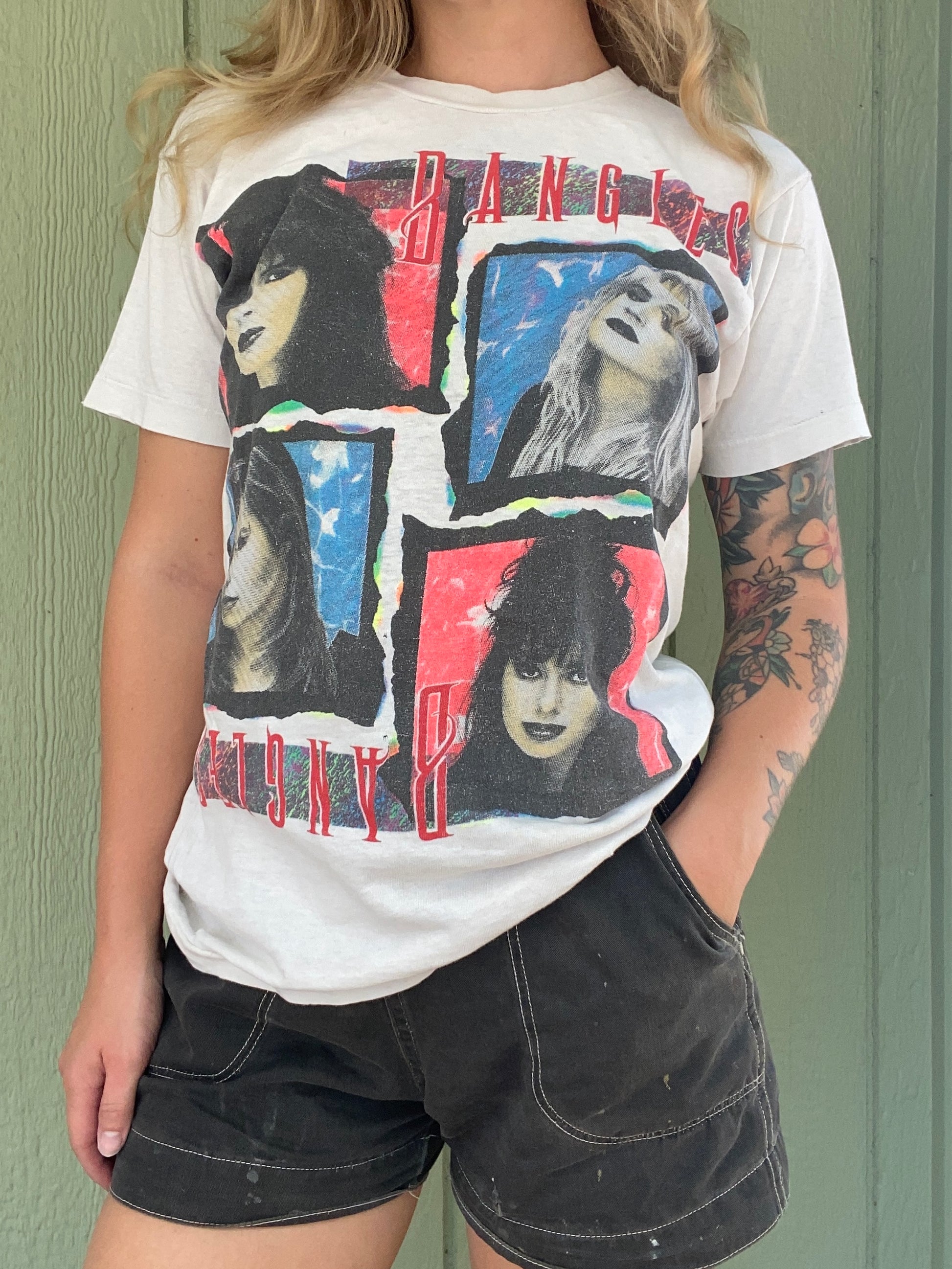 100% cotton Screen Stars t shirt. Epic graphic of the Bangles from the 80s. Some of their major hits from this time were “Manic Monday”, “Walk like an Egyptian”, Hazy Shade of Winter”, “In Your Room” & “Eternal Flame”. Thin and single stitch.