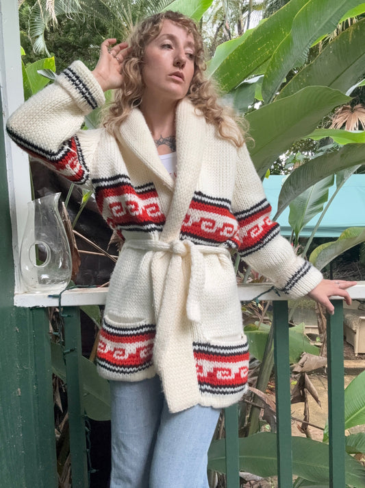 1970s chunky handmade shawl collar cardigan